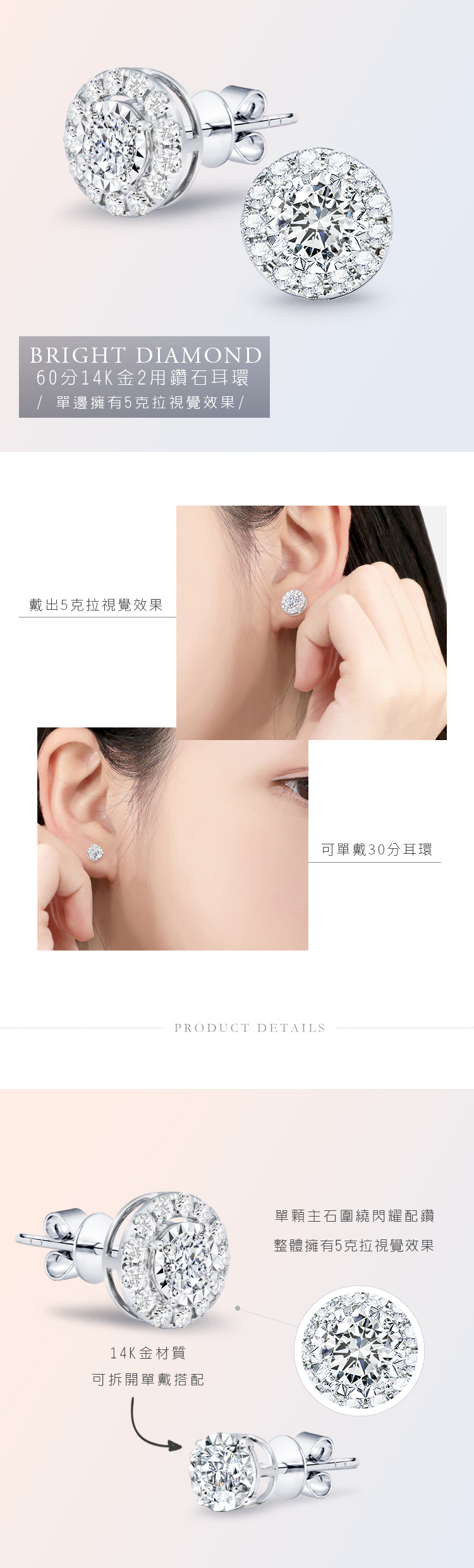 60分14K金兩用鑽石耳環