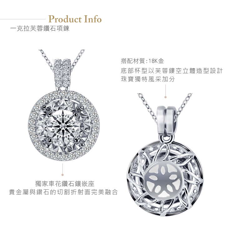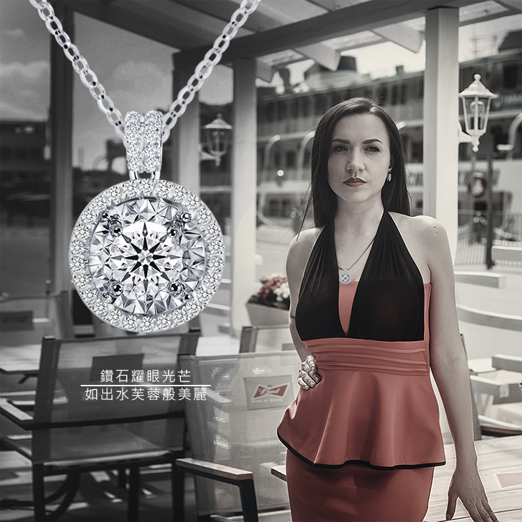 一克拉18K金豪華滿鑽緣滿鑽石項墜
