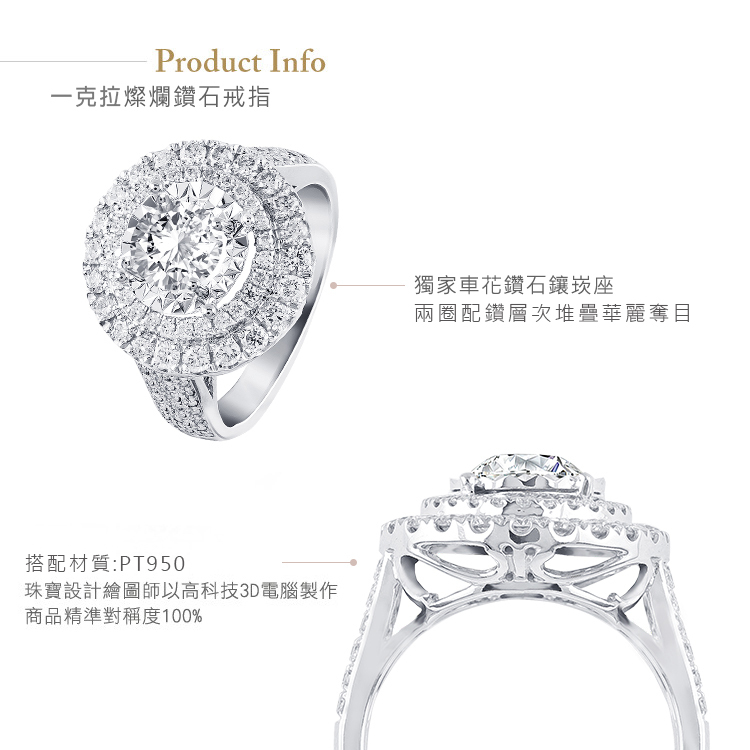 一克拉PT950滿鑽燦耀鑽石戒指