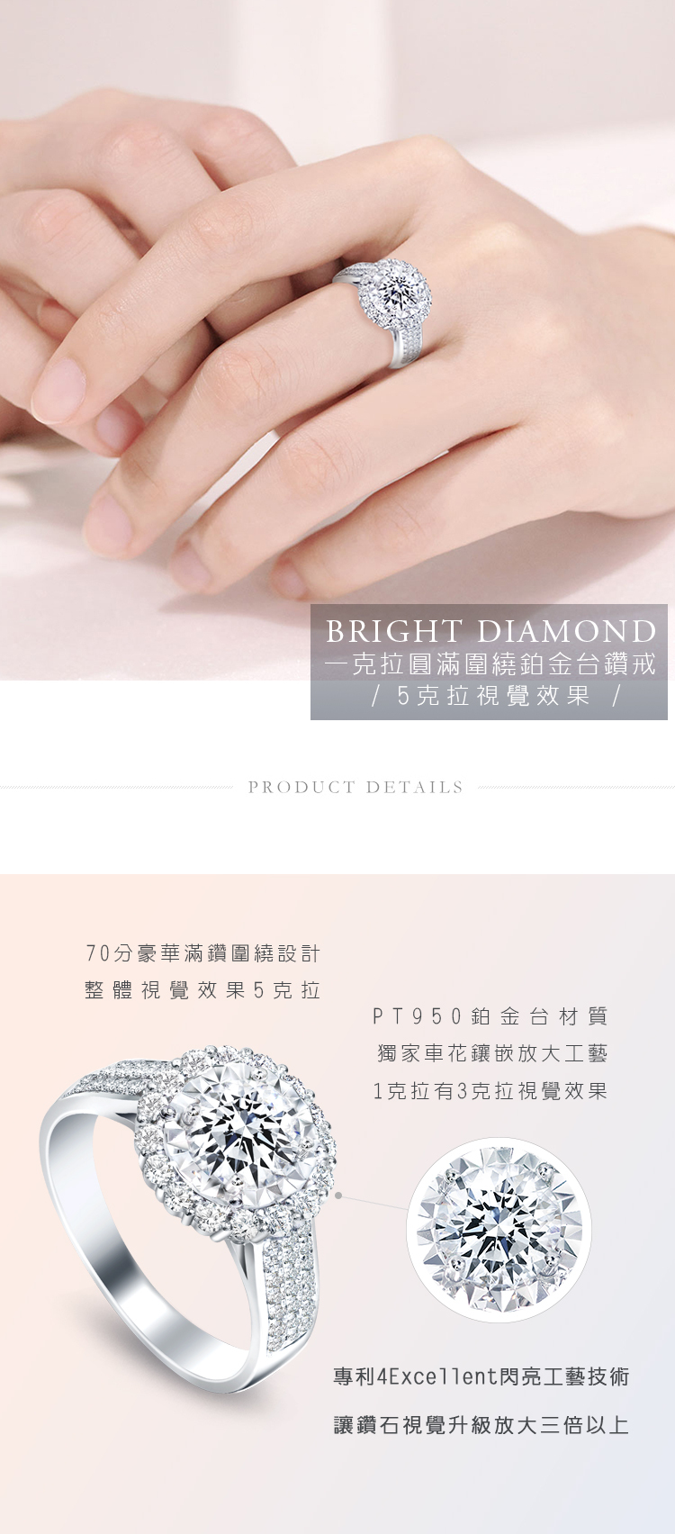 PT950鉑金,5克拉視覺效果