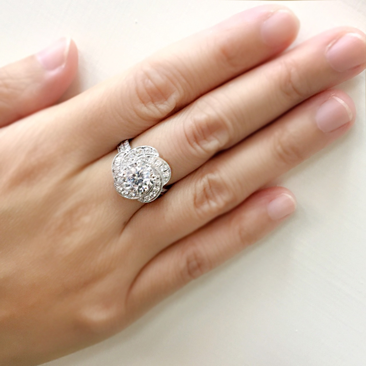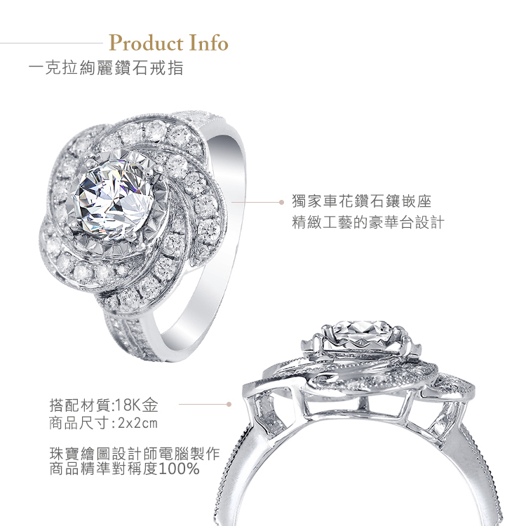 一克拉18K金山茶花鑽石戒指