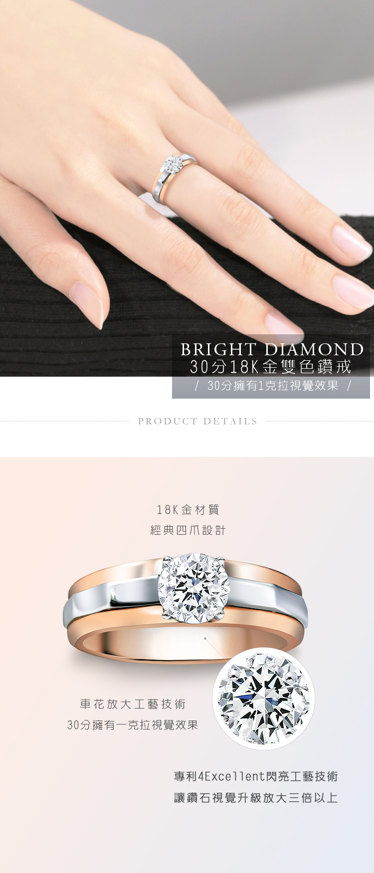 30分18K金簡約中性雙色鑽石戒指