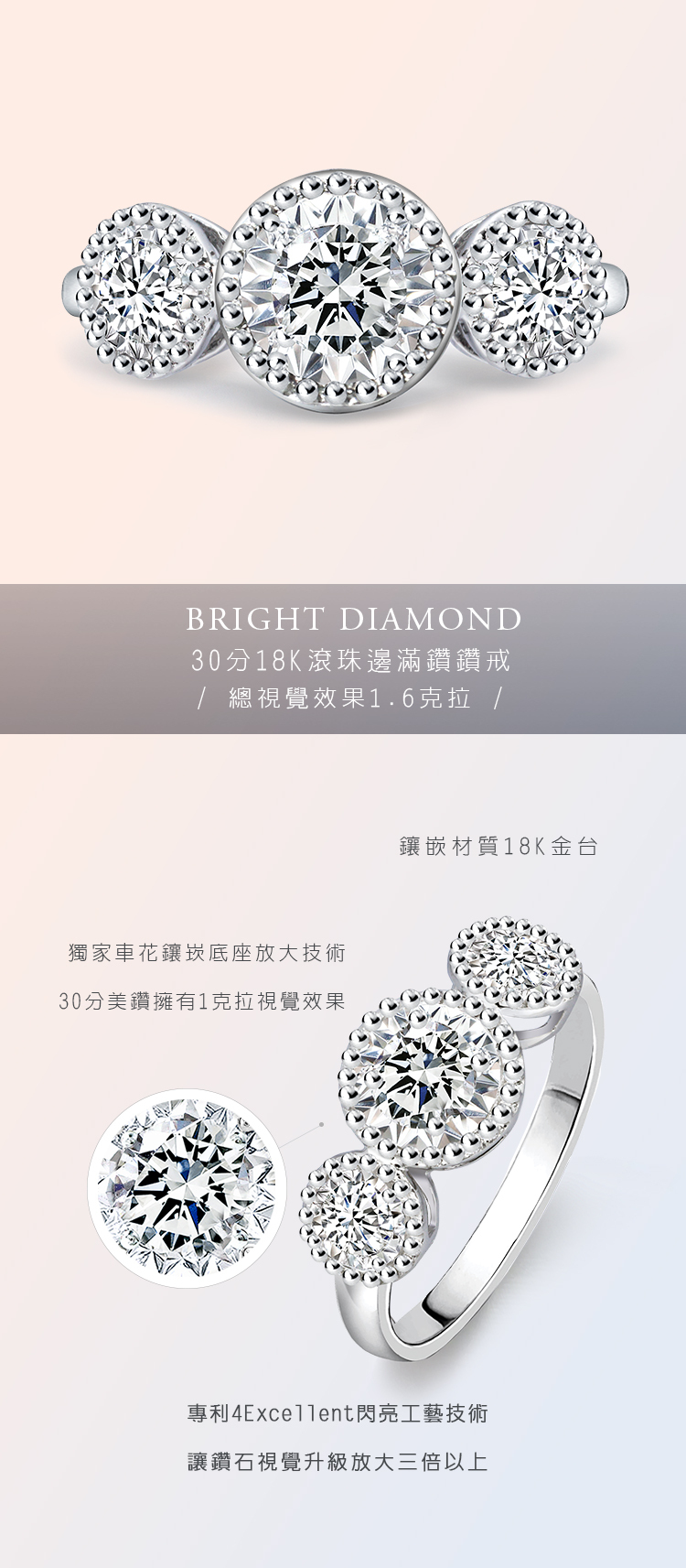 18K金,一克拉視覺效果