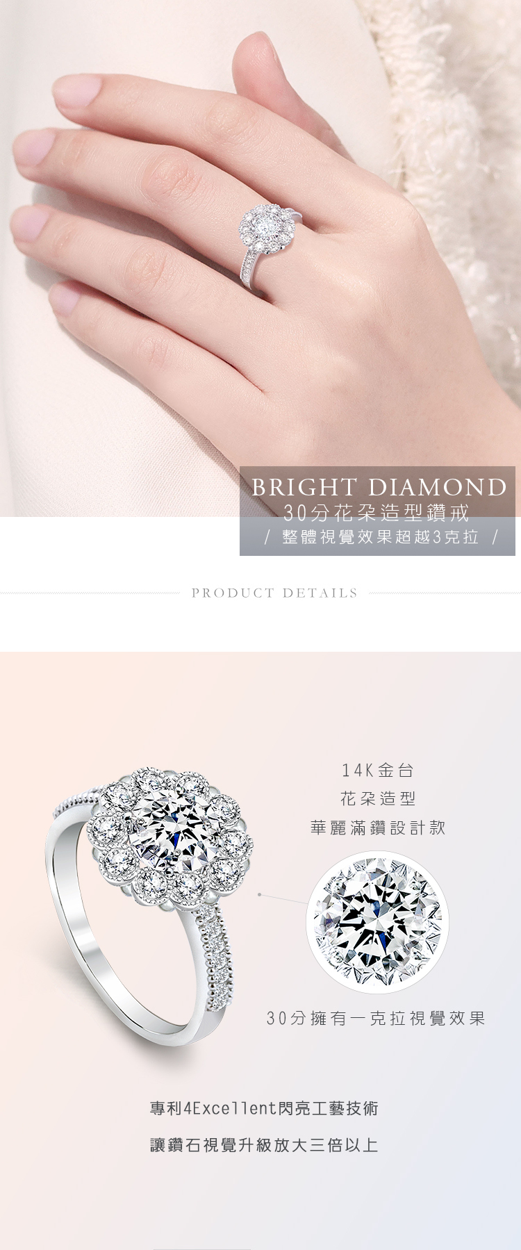 0.30克拉 D / SI2 / 3 Excellent(極優) / 八心八箭