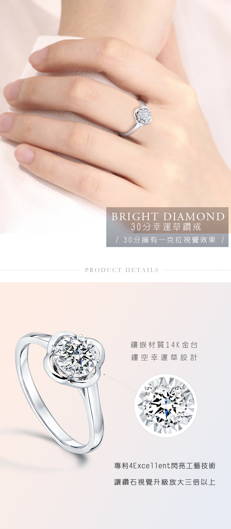 30分簡約幸運草鑽石戒指